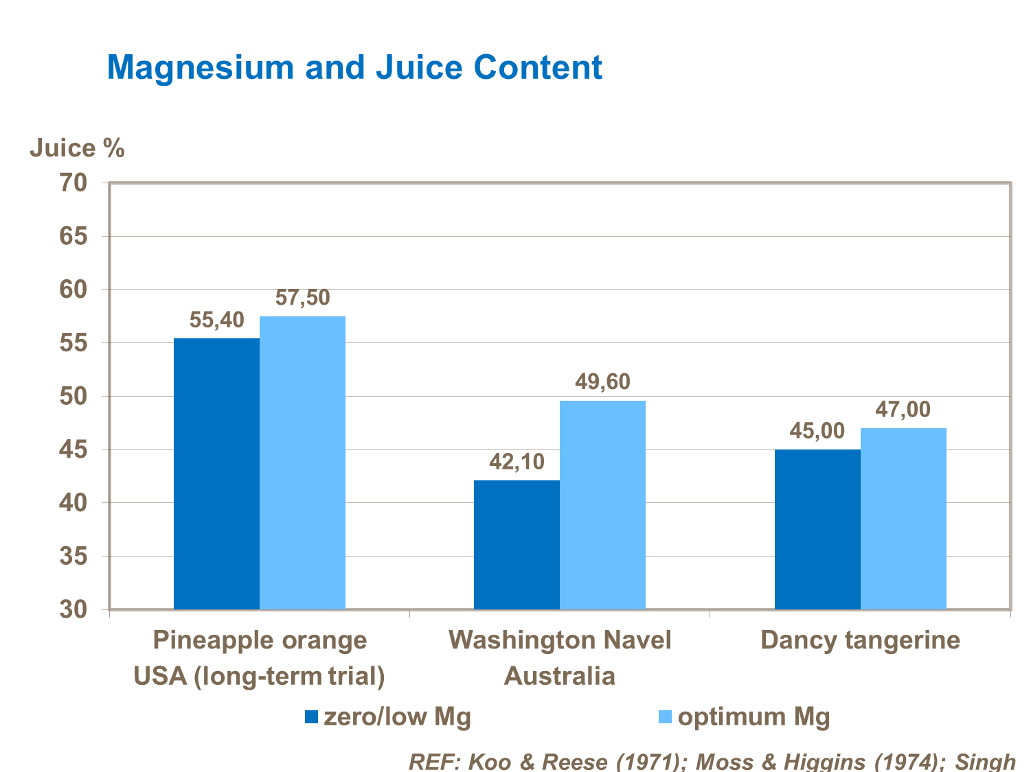 Une utilisation optimale de magnésium, telle qu'illustrée pour un éventail de fruits et de conditions, stimule également la teneur en jus des fruits.